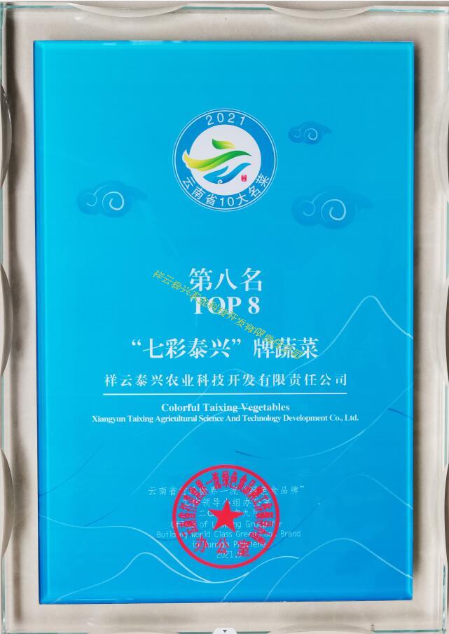 “七彩泰兴”牌蔬菜荣获“2021年云南省十大名菜”